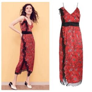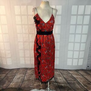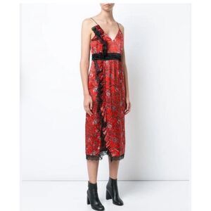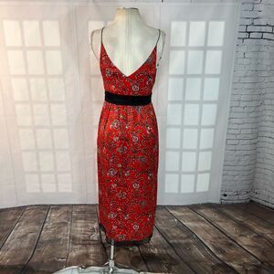Elegant Red Floral Midi Dress