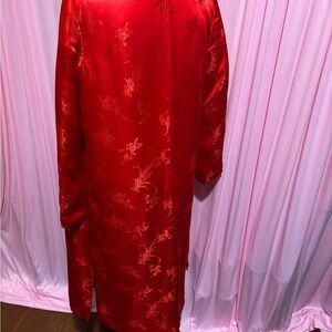 This Vintage elegant red floral coat is perfect for adding a touch of sophistication to any outfit. The intricate floral design enhances its luxurious appeal.