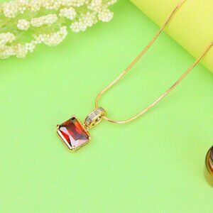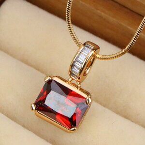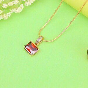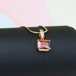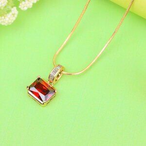 Vibrant and refined red gemstone pendant set in a gold-plated brass frame, ideal for elevating any chain or necklace.