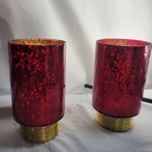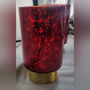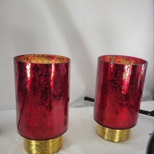 NWT Beautiful red glass candle holders, featuring a gold base. Perfect for home decor. The price increase is due to both Holders being close to 7 pounds and increased shipping, but I am willing to separate the two. Measurements are approximately 7" tall x 4" wide.