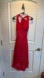 Stunning red halter dress with a flowing design. Perfect for special occasions.