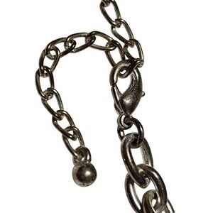 A versatile silver chain necklace featuring a striking red heart pendant. The toggle clasp ensures ease of wear, adding a touch of sophistication.
