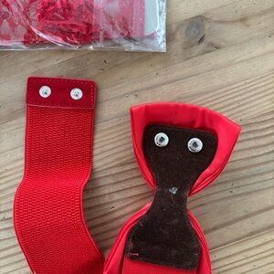Enhance your style with these elegant red lace gloves, complete with a matching bow belt. Perfect for adding a touch of sophistication to any outfit.
