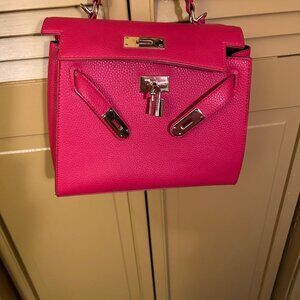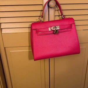Elegant Red Leather Satchel. It's stunning red sleek design is perfect for any occasion. 8x9, one handle. no logo or brand