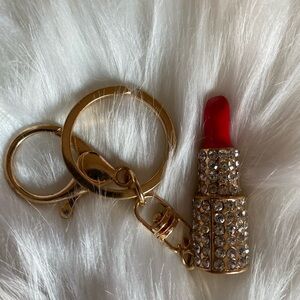 Add a touch of glamour to your keys with this elegant red lipstick keychain. The sparkling design is perfect for makeup lovers.