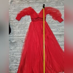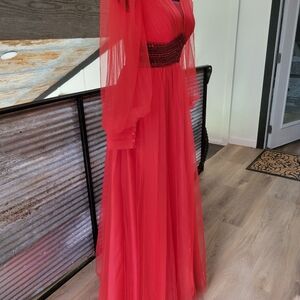 This stunning long sleeve dress features a vibrant red hue, perfect for any special occasion. The elegant design offers a flattering fit and timeless style.