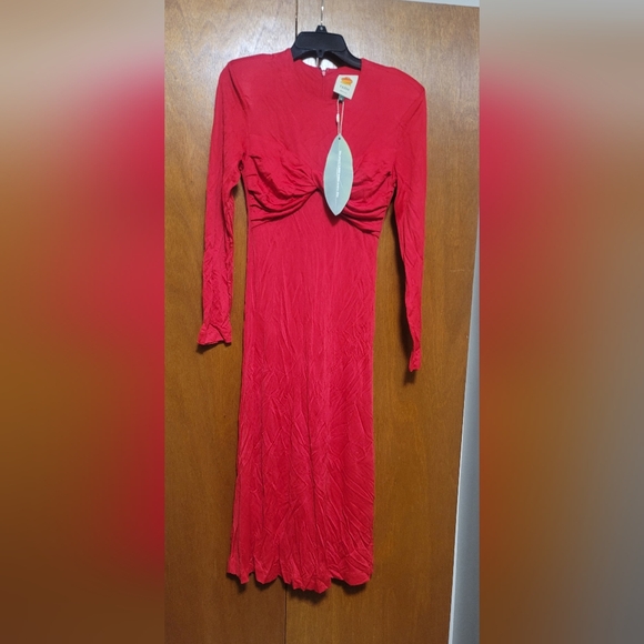 Elegant Red Long Sleeve Dress By Farmrio