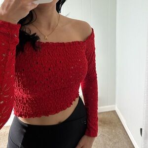 This elegant red off-shoulder sweater is perfect for any occasion. Its vibrant color adds a touch of sophistication to your wardrobe.