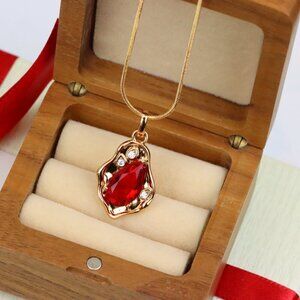 "Elegant Red Teardrop Pendant with Gold Plated Irregular Frame, XPPT1729