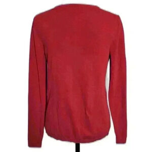 Elegant Red V-Neck Sweater with Metallic Accents