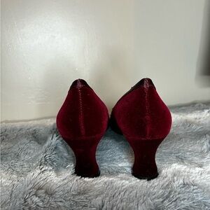 Step out in style with these elegant velvet burgundy heels. Perfect for any occasion — especially holiday parties, or New Year’s Eve.
