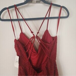 The Demi pearl beaded mini dress knows how to make an exit. The party dress showcases a sultry V-neckline, an open strappy back sure to make heads turn, and a bodycon silhouette. Pair with earrings.