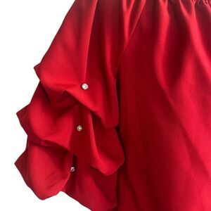 This elegant red top features stylish ruffled sleeves and a chic design, perfect for any occasion.