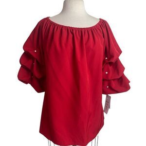 Elegant Red Women's Top Prelude XL off the shoulder ruched sleeves