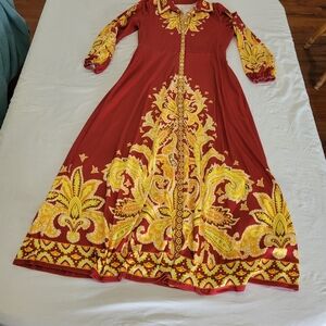 Elegant Red and Gold Women's Dress Size XL Button Up Down Graphic Print Collar