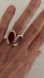 This stunning heart-shaped ring features a vibrant red center encased in a sleek silver setting. Perfect for adding a touch of elegance to any outfit.