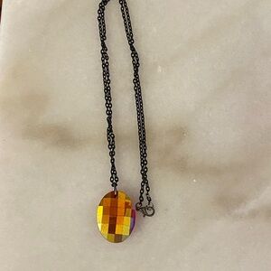 Elegant Red and gold tone Pendant with black chain goth Necklace