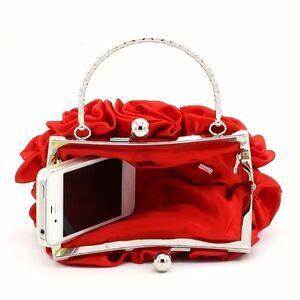 This stunning handbag features a vibrant red rose design, perfect for adding a touch of elegance to any outfit. The unique floral pattern makes it a standout accessory.