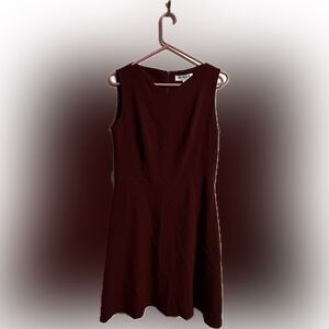 This elegant red midi dress showcases a timeless A-line silhouette with a sleeveless design and a crew neckline. Ideal for wedding guests, its structured fabric ensures a flattering fit and sophisticated appearance.