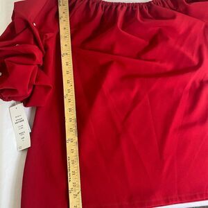 Elegant Red Women's Top Prelude XL off the shoulder ruched sleeves