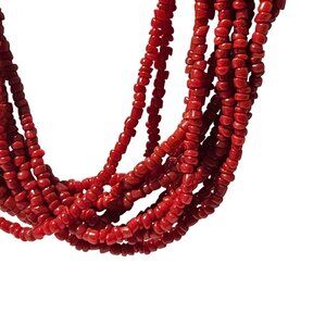 Elegant Retro Red Seed Beaded Chunky Necklace Multi Strand Fashion Jewelry Women