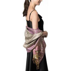 Elegant Reversible Paisley Shawl Wrap Scarf Brown