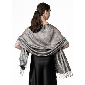 Elegant Reversible Paisley Shawl Wrap Scarf Grey