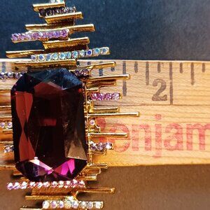 This is gorgeous ! Gold tone, small rhinestones are clear, and the next row is lavender.