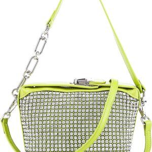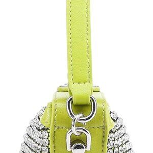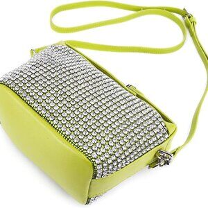 Features: Stunning genuine leather bag with hand-set rhinestones all over for a glamorous touch. Compact size perfect for daily essentials like your phone, keys, lipstick, and more. Adjustable shoulder strap offers versatile wear as a crossbody, satchel, or handbag. Top zip fastening with silver-tone hardware and a handy wall pocket make organizing easy.
