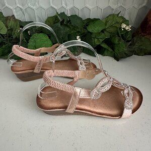 Elegant Rhinestone Embellished Rose Gold Sandals Size 39