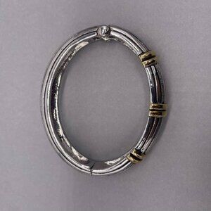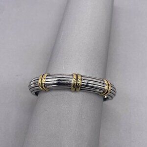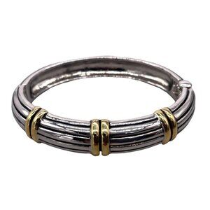 Elegant Ribbed Byzantine Style Hinge Bangle Bracelet Silver and Gold Tone