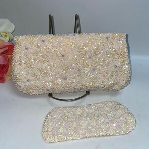 This elegant Richere cream beaded clutch is perfect for any special occasion. Its intricate beadwork adds a touch of sophistication to your ensemble.