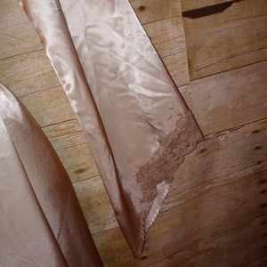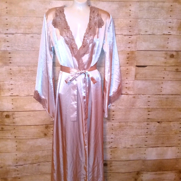This timeless robe from Valerie Stevens is simply gorgeous. This robe has lace accent on the sleeves and lapel. It also has side splits on both sides of the bottom of the robe.