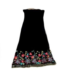 Long Black Dress With Mesh Patchwork And Floral Embroidery