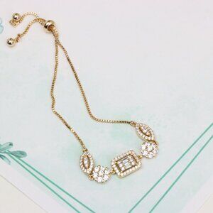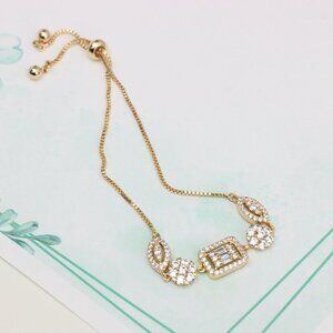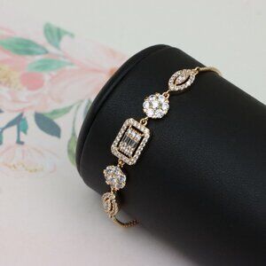 "Elegant Rose Gold A-Bracelet with Sparkling Stones, Adjustable Size, XPAB0648