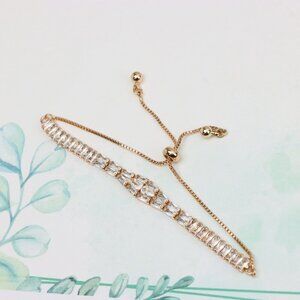 "Elegant Rose Gold Adjustable Bracelet with Sparkling Baguette Stones, XPAB0647