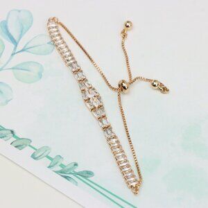 "Elegant Rose Gold Adjustable Bracelet with Sparkling Baguette Stones, XPAB0647