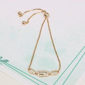 Stylish and modern rose gold adjustable bracelet featuring shimmering rectangle charms. Perfect for everyday wear or gifting.