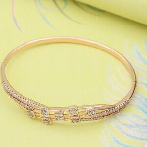 "Elegant Rose Gold Bangle with Dazzling Square Crystal Detailing, XPBL0516