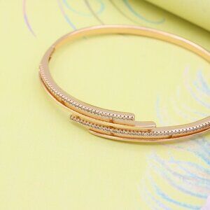 Elegant Rose Gold Bangle with Dual Layered CZ Bar Design, XPBL0594