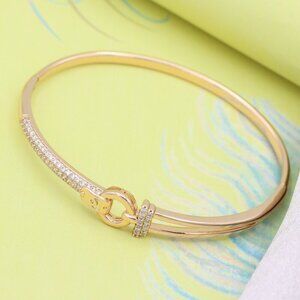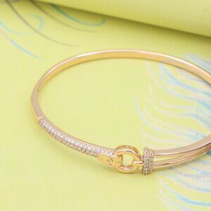 "Elegant Rose Gold Bangle with Dual-Tone Ring Accent, XPBL0586