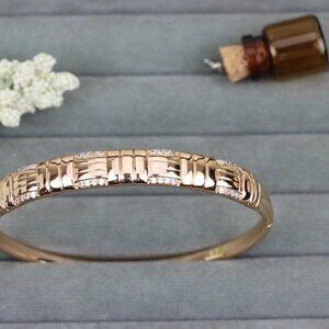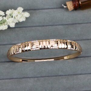 "Elegant Rose Gold Bangle with Textured Design and Crystal Accents, XPBL0504