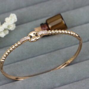 "Elegant Rose Gold Beaded Bangle with Central Link Design, XPBL0451