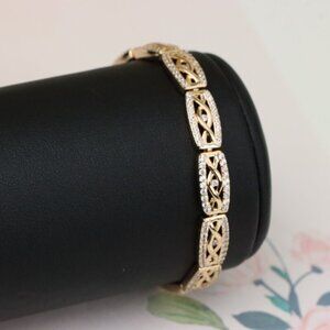 Crafted in luxurious rose gold tone, this bracelet features a refined rectangular link design accented with shimmering crystals.