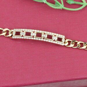 Crafted with premium gold plating over high-quality brass, this elegant bracelet features a stunning central link design adorned with shimmering crystals. A perfect blend of sophistication and shine.