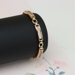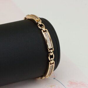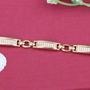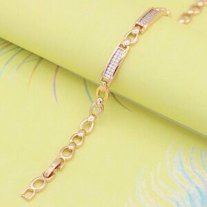 "Elegant Rose Gold Bracelet with Dazzling Rectangle CZ Panels, XPBL0952