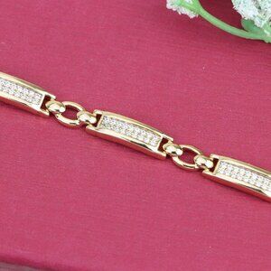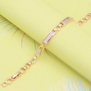 "Elegant Rose Gold Bracelet with Dazzling Rectangle CZ Panels, XPBL0952