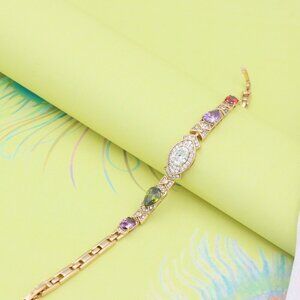"Elegant Rose Gold Bracelet with Multicolor Stones and CZ Sparkle, XPBL0727