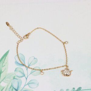 This charming Rose Gold Bracelet features a dazzling teapot design adorned with sparkling crystals, adding a playful yet luxurious touch to any outfit. Made with high-quality brass and gold plating for lasting beauty.