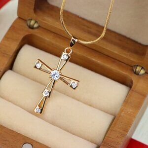 ✔️ Cross design featuring sparkling center and corner stones